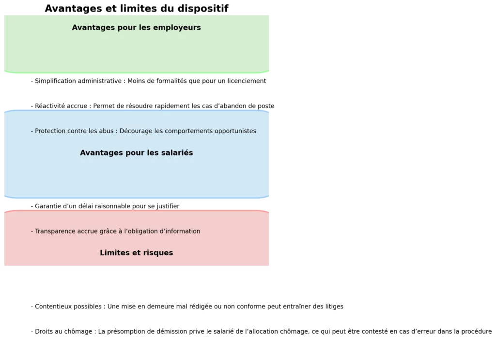 - Simplifier la gestion des absences injustifiées : Permettre aux employeurs d’agir rapidement face à un salarié qui abandonne son poste volontairement.