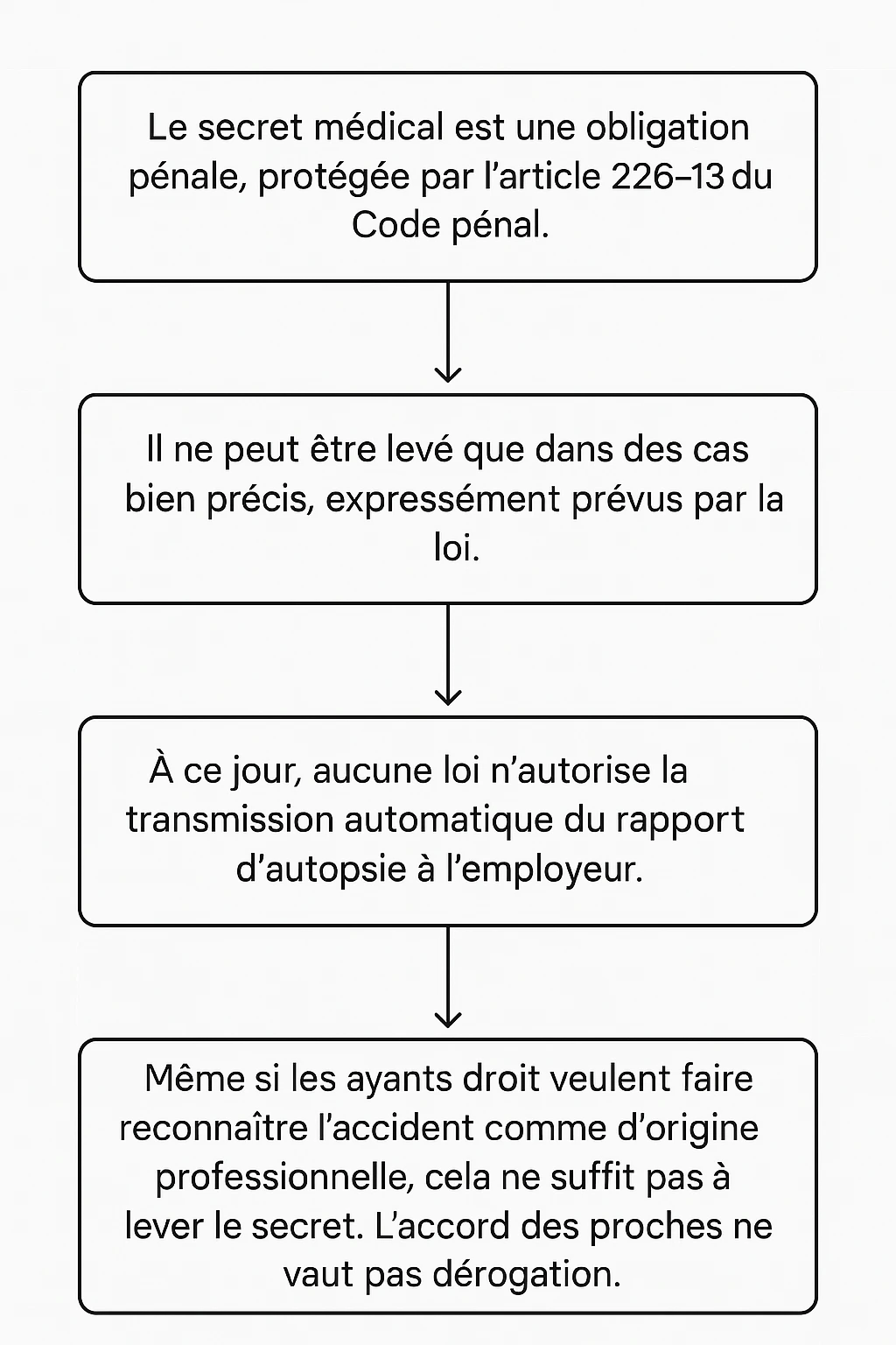 - À ce jour, aucune loi n’autorise la transmission automatique du rapport d’autopsie à l’employeur.