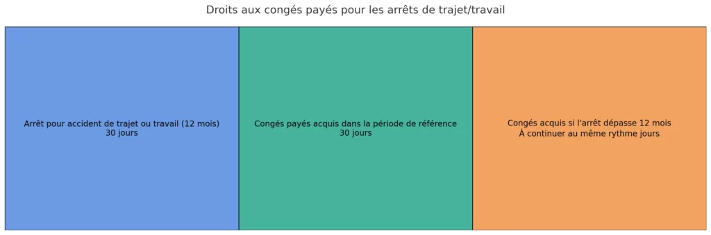 Les règles applicables aux arrêts pour accident du travail ou accident de trajet restent inchangées. Les salariés continuent d’acquérir 2,5 jours de congés payés par mois d’arrêt, et ce sans limitation annuelle. Cela constitue un droit plus avantageux que celui accordé en cas de maladie ou d’accident non professionnel.