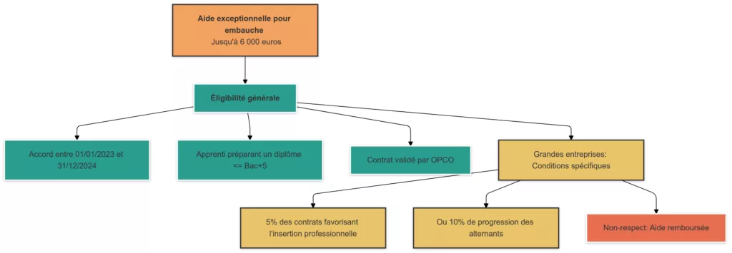| Aide à l’embauche d’un apprenti | Toutes les entreprises | Jusqu’à 6 000 € | Contrat conclu entre 2023 et 2024 |