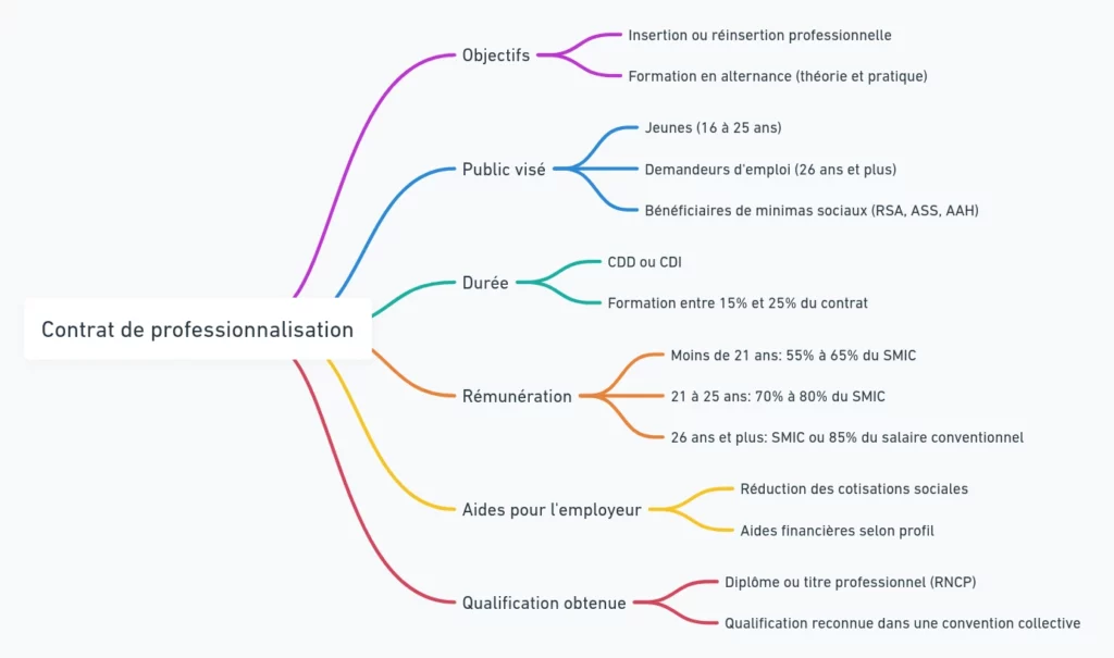 | Contrat de professionnalisation | Jeunes et adultes en reconversion | Allègement de charges sociales | Durée minimale de 6 mois |