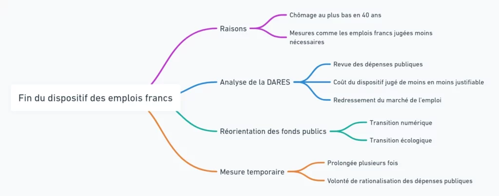 Malgré son succès apparent, le gouvernement a annoncé la fin du dispositif des emplois francs dans le cadre du projet de loi de finances pour 2025. La raison principale avancée est que le chômage en France a atteint son niveau le plus bas depuis 40 ans. Le gouvernement estime donc que des mesures telles que les emplois francs ne sont plus aussi cruciales qu’elles ne l’étaient auparavant.