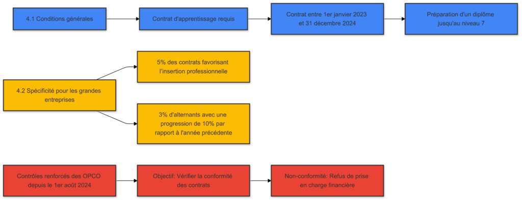 | Conditions | – Contrat d’apprentissage uniquement. – Diplôme ou titre jusqu’au niveau 7 (Master). |