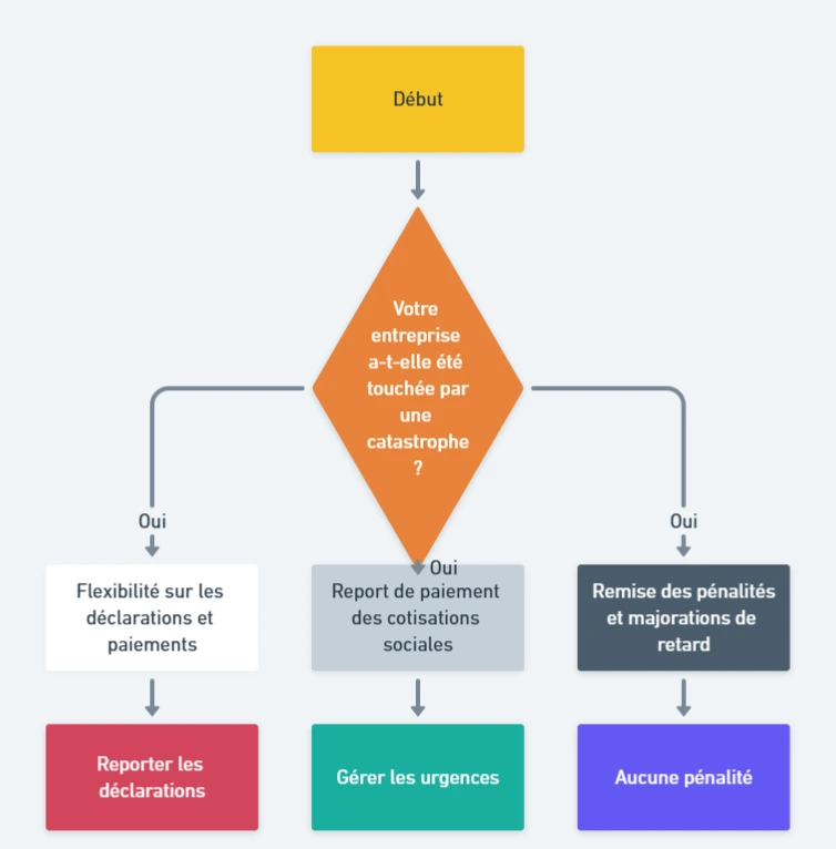 En temps normal, un retard dans le paiement des cotisations entraîne des pénalités. Mais quand la catastrophe frappe, c’est différent. Si vous êtes dans l’impossibilité de payer à cause de la situation exceptionnelle, l’URSSAF ne vous ajoutera pas de pénalités ou de majorations. C’est un vrai soulagement pour éviter que la situation ne devienne encore plus difficile à gérer.