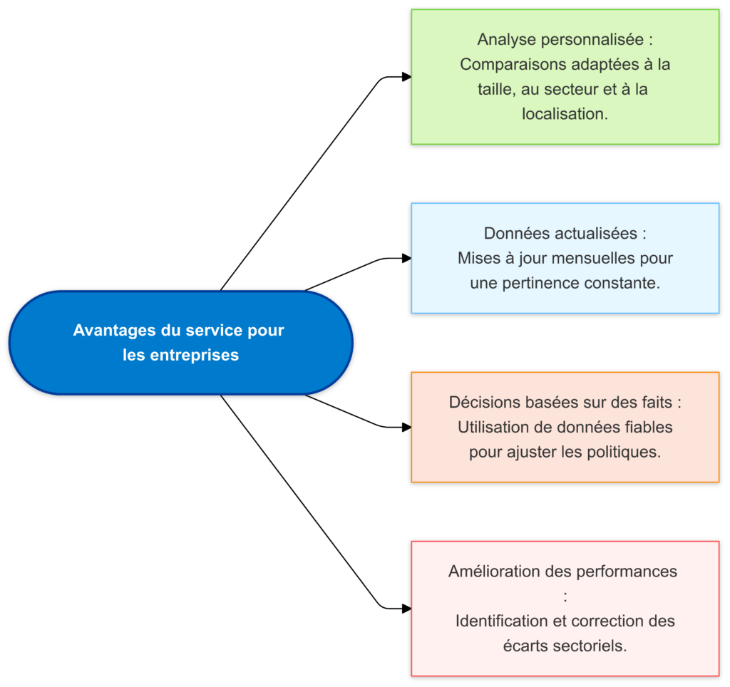 Le service « Indicateurs Entreprises » représente une avancée majeure dans la gestion RH. Grâce à des données fiables et actualisées, les entreprises peuvent non seulement se comparer mais aussi adapter leurs politiques pour rester compétitives. Que ce soit pour ajuster les salaires, optimiser le recrutement ou réduire le turnover, cet outil est une véritable mine d’or.