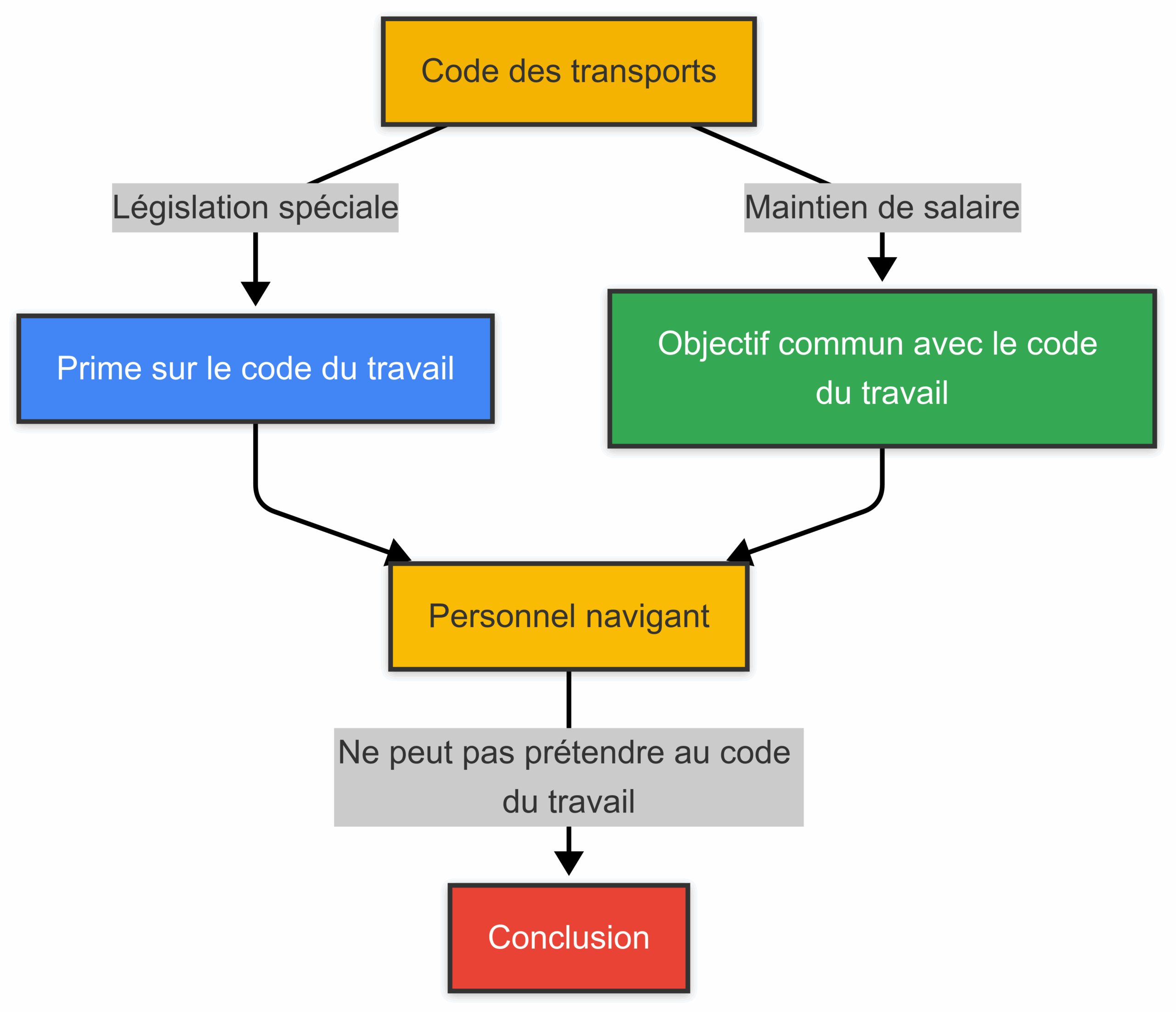 - Par conséquent, un personnel navigant ne peut pas prétendre aux dispositions du code du travail.