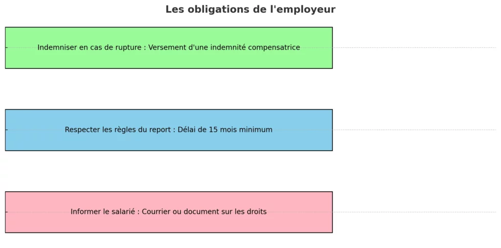 - Délai strict : Si le salarié ou l’employeur oublie la fin du délai de 15 mois, les congés sont définitivement perdus.