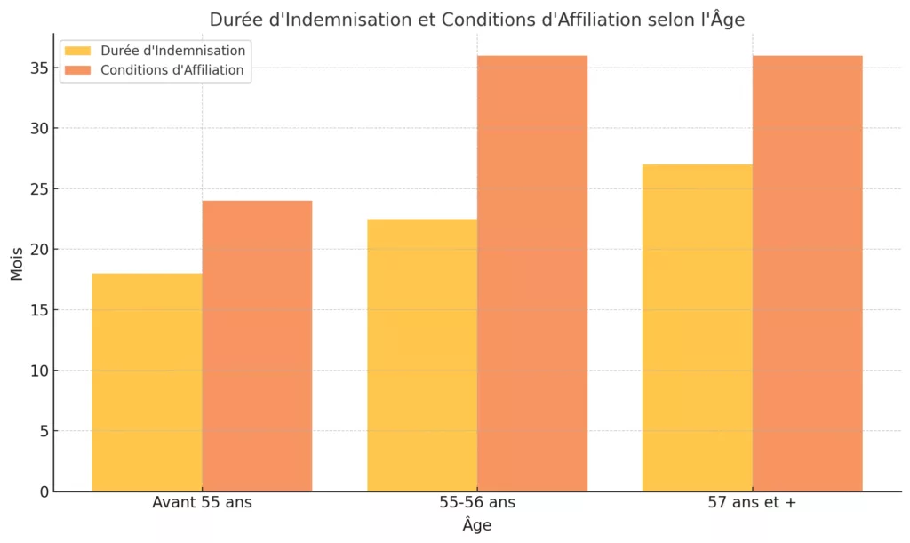 | Âge | Durée Maximale d’Indemnisation | Conditions d’Affiliation |