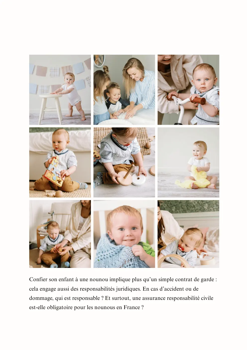 Elle peut être personnelle (généralement incluse dans l’assurance habitation) ou professionnelle, selon le statut de la nounou. C’est une protection essentielle face aux imprévus du quotidien.
