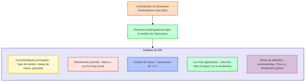 L’introduction du Document d’Informations Clés (DIC) par l’Union Européenne a renforcé la transparence dans le secteur de l’assurance. Le DIC est un document synthétique, limité à trois pages, qui présente les éléments essentiels du produit d’assurance de manière concise et visuelle. Il permet au souscripteur de comparer les produits facilement, grâce à une présentation standardisée.