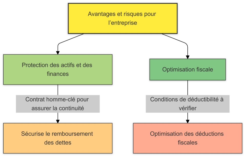 | Assurance homme-clé (décès) | Capital forfaitaire ou indemnisation sur perte | Déductibilité immédiate |