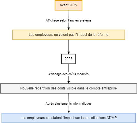 - 2025 : Les cotisations AT/MP restent basées sur les sinistres des années 2021, 2022 et 2023, suivant les règles en vigueur avant la réforme.
