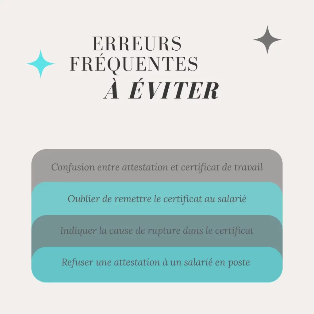 - Confondre attestation et certificat de travail. Le certificat est exigé par la loi en fin de contrat, ce qui n’est pas le cas de l’attestation.