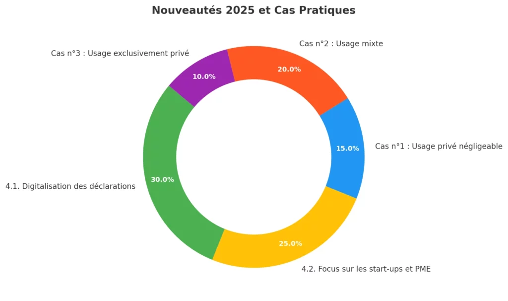 - Mixte (privé et professionnel) : Dans ce cas, la partie usage privé est considérée comme un avantage en nature et doit être évaluée.