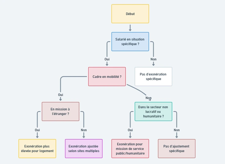 Cas des cadres en mobilité : Les cadres en mission à l’étranger ou en mobilité entre plusieurs sites peuvent bénéficier de plafonds d’exonération plus élevés, adaptés aux spécificités de leur poste. Par exemple, un cadre en mission longue à l’étranger peut recevoir une exonération plus étendue pour couvrir les dépenses de logement.
