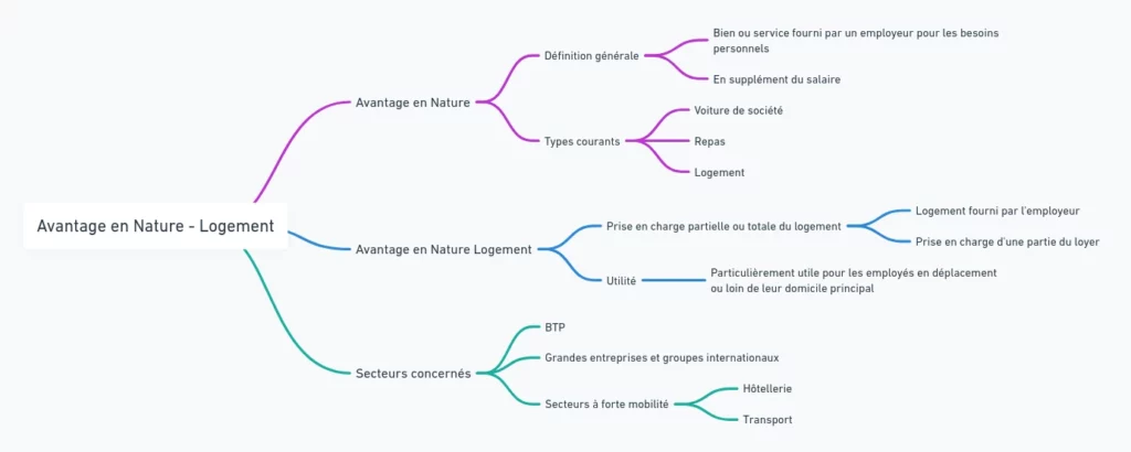 Un avantage en nature, de manière générale, correspond à un bien ou service fourni par un employeur pour les besoins personnels d’un salarié, en plus de son salaire. Cela peut inclure l’usage d’une voiture de société, des repas ou, dans notre cas, un logement. Un avantage en nature logement signifie que l’employeur prend en charge le coût total ou partiel du logement du salarié, soit en lui fournissant un logement, soit en prenant en charge une partie de son loyer.
