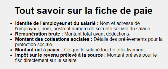 Quelles informations doivent être indiquées sur la fiche de paie?