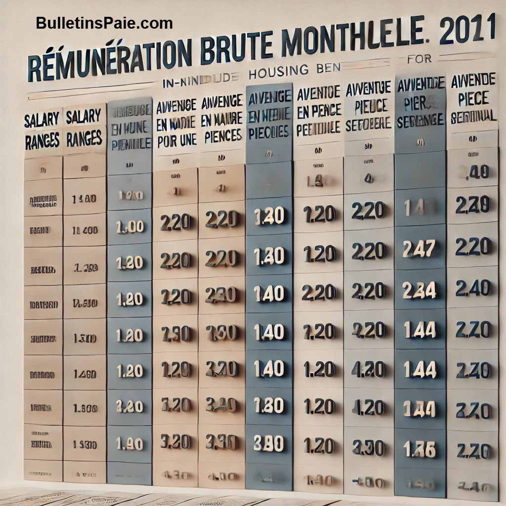 L’évaluation de l’avantage en nature logement varie en fonction du salaire brut mensuel de l’employé et du nombre de pièces principales dans le logement. Voici les détails pour l’année 2011 :