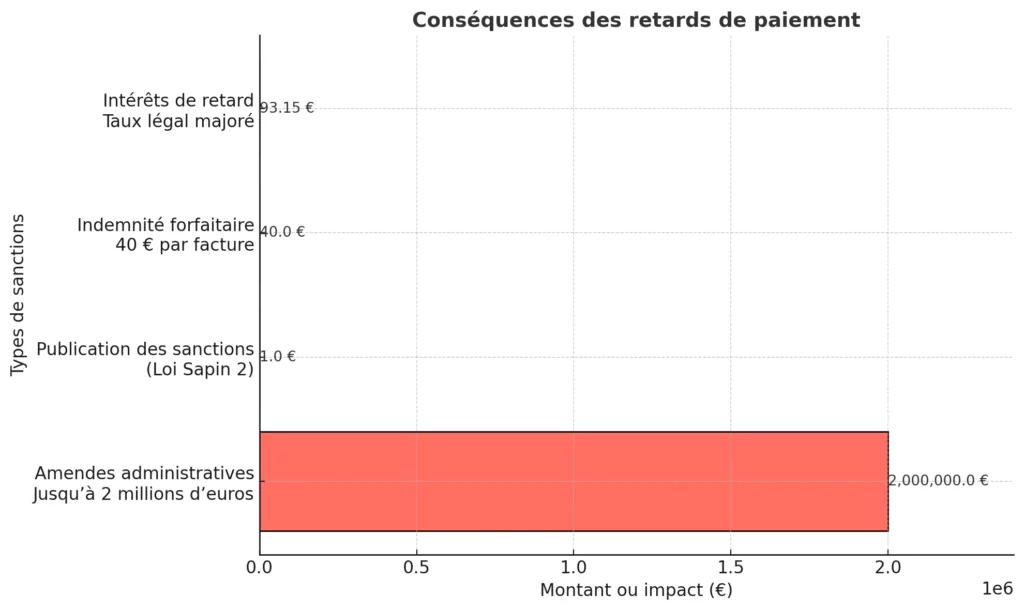 - Amendes administratives : Jusqu’à 2 millions d’euros pour les plus grands retards.