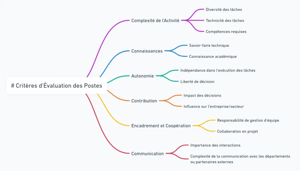 La nouvelle grille repose sur une évaluation objective des postes en fonction de six critères principaux, chacun ayant le même poids dans le calcul de la cotation finale. Ces critères sont les suivants :