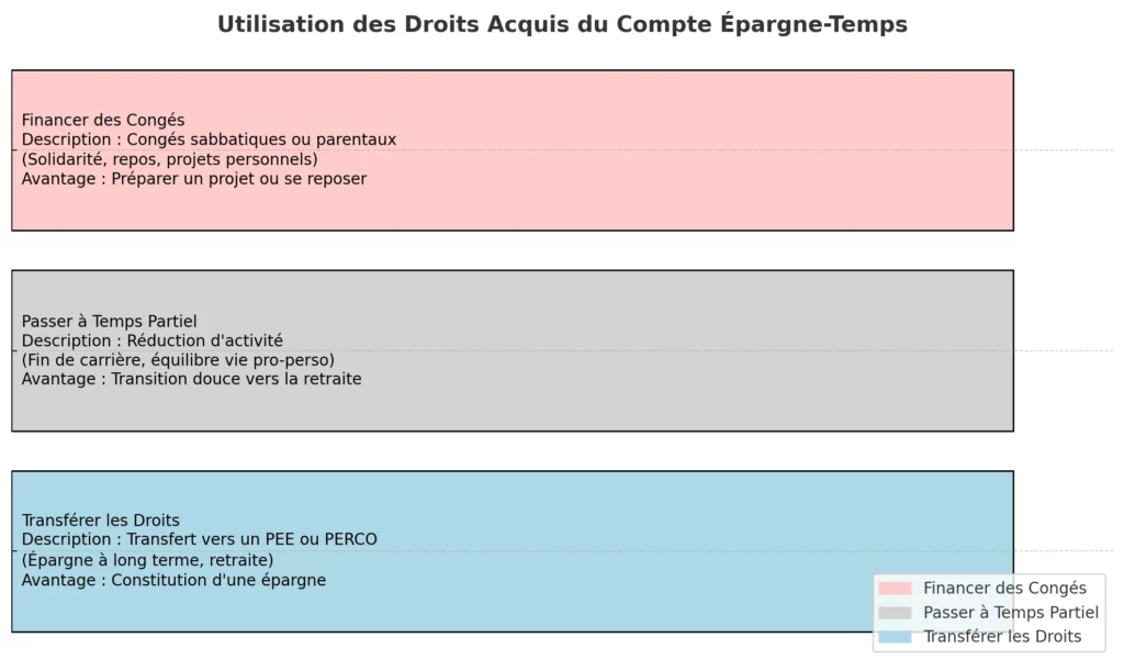 - Avantages fiscaux et sociaux : Certaines utilisations du CET offrent des exonérations.