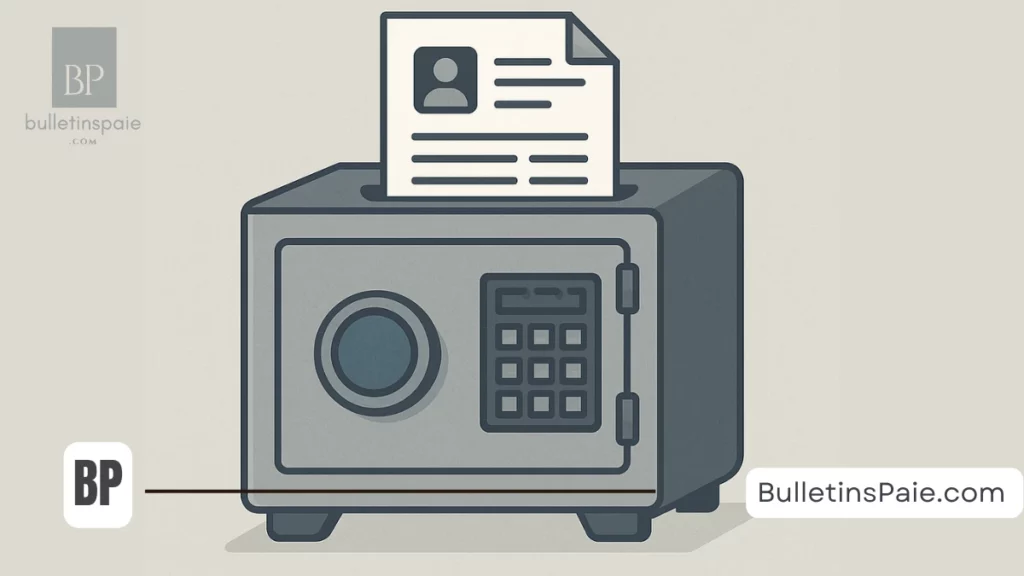 - Protection des données personnelles : une fiche de paie contient des informations sensibles (nom, adresse, numéro de sécu…). Le coffre-fort en assure la sécurité.