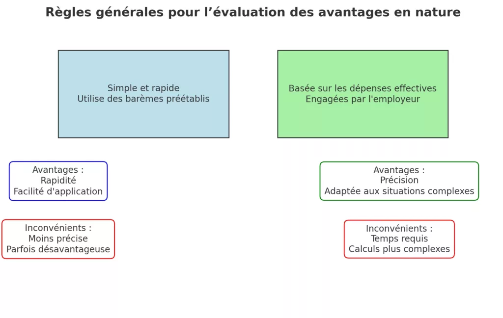 L’évaluation des avantages en nature peut se faire de deux manières principales :
