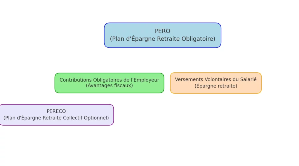 Le PERO se distingue du PERECO2, un plan d’épargne retraite collectif et facultatif, qui repose davantage sur des versements volontaires. Les entreprises peuvent choisir d’offrir uniquement le PERO, ou de combiner les deux plans dans un dispositif commun pour offrir plus de souplesse à leurs salariés.