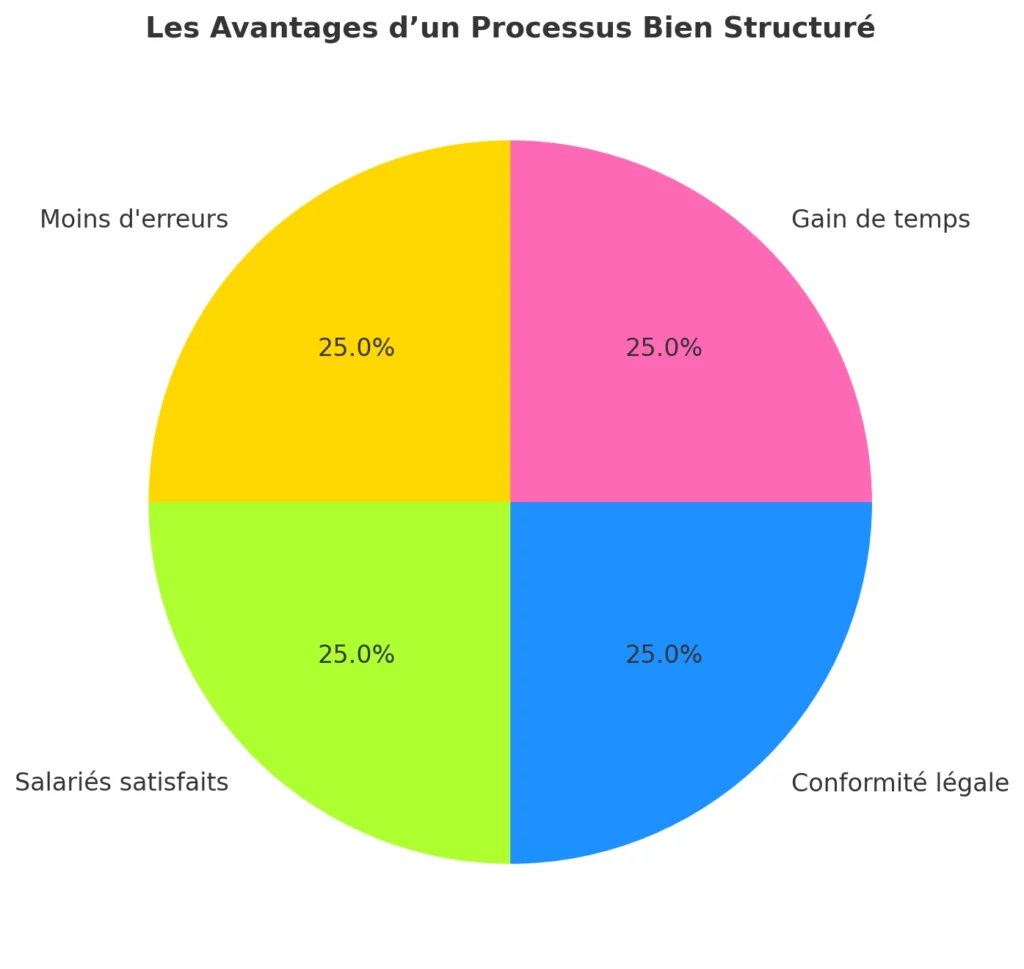 Mettre en place un processus de paie bien structuré apporte de nombreux bénéfices, notamment :