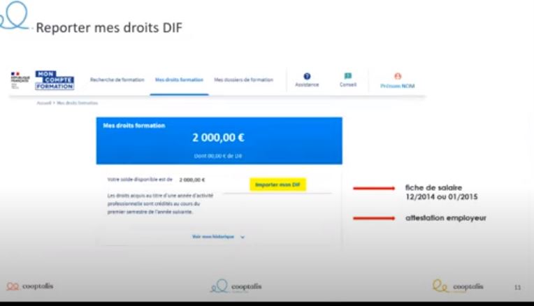 Vidéo Comment transférer les heures des DIF figurant sur la fiche de paie du décembre 2014 sur leurs comptes CPF. C’est une opération que chaque salarié doit faire avant le 1 juillet 2021. Sans cette démarche, le salarié perd ses droits à la formation acquis pendant la période allant de la date de sa première activité professionnelle jusqu’au 31 décembre 2014.