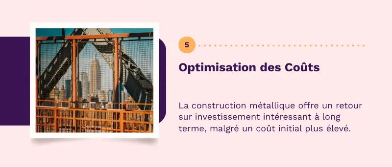 Bien que l’acier puisse représenter un investissement initial plus important que le béton, son usage permet de réaliser des économies substantielles sur la durée. La rapidité d’exécution limite les frais de main-d’œuvre et les coûts liés aux délais de construction. De plus, sa robustesse et son entretien minimal réduisent les dépenses à long terme, offrant ainsi un excellent retour sur investissement pour les projets de grande envergure.