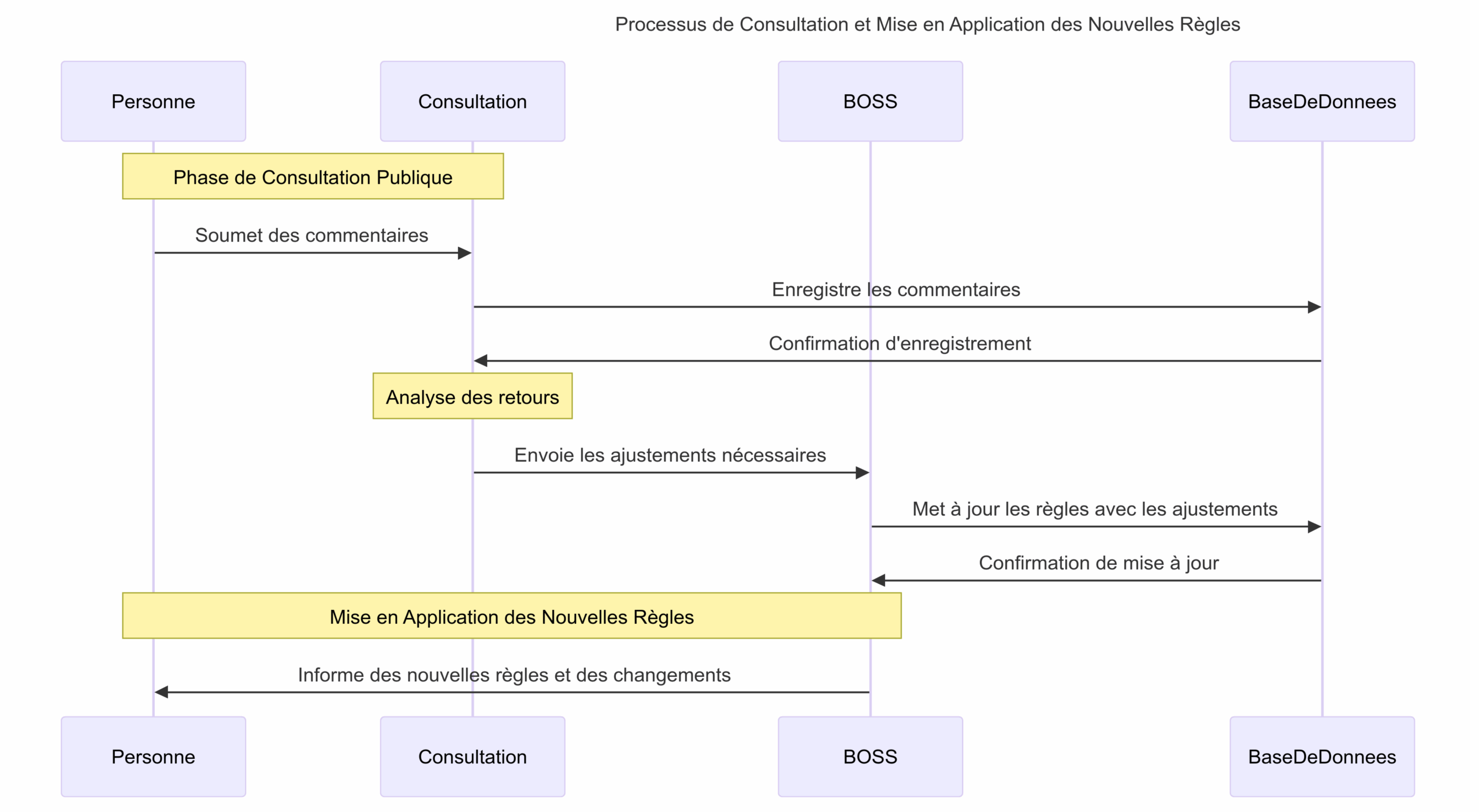 - Phase de Consultation Publique : La rubrique est en consultation publique jusqu’au 31 août 2024. Pendant cette période, tout le monde peut donner son avis, poser des questions ou faire des remarques.