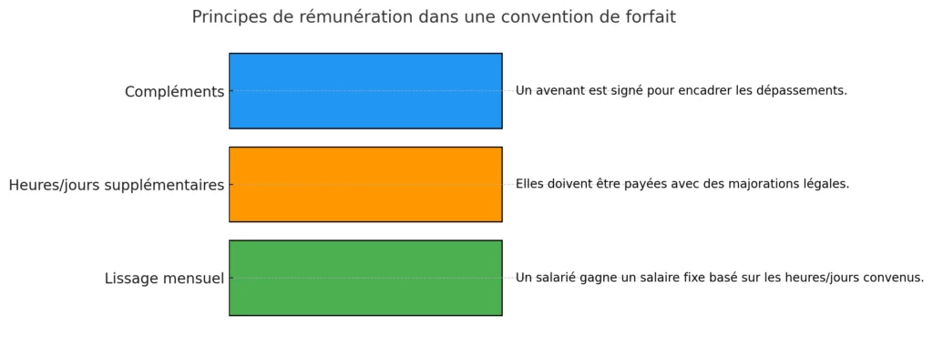 La rémunération dans une convention de forfait est souvent lissée sur l’année, ce qui signifie que le salarié touche le même salaire chaque mois, peu importe les variations de sa charge de travail.
