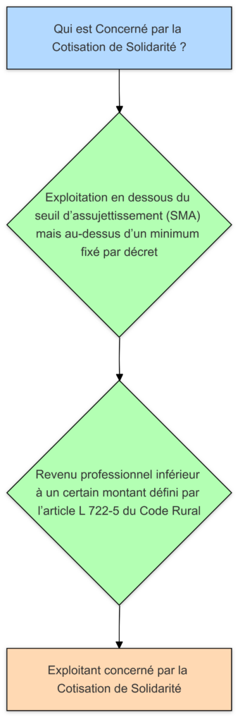 La cotisation de solidarité est déterminée en fonction des revenus professionnels générés l’année antérieure à celle où la cotisation est versée. Toutefois, une assiette forfaitaire est mise en place pour les nouveaux agriculteurs dont les recettes ne sont pas encore identifiées. Une fois que les revenus réels ont été déclarés, cette assiette temporaire est ajustée.