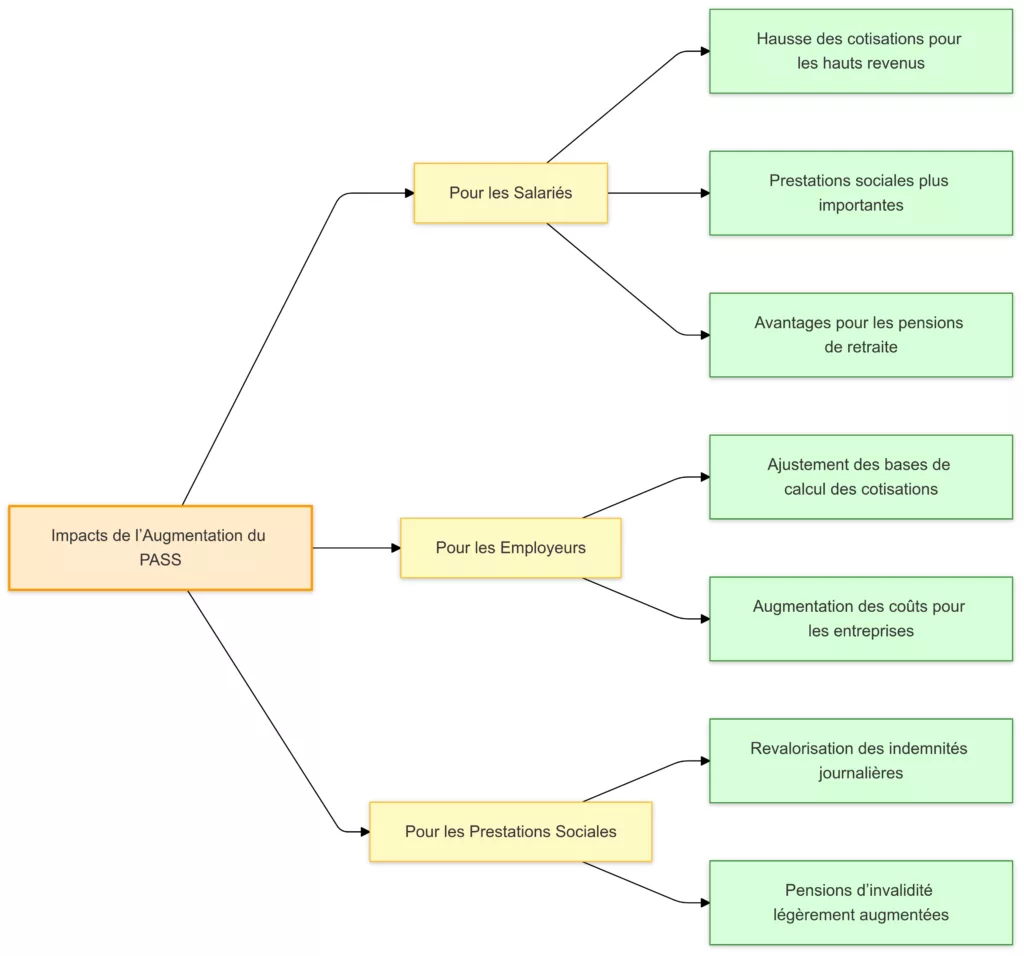 - Une augmentation du PASS entraîne généralement une hausse des cotisations pour les revenus élevés. Cependant, cela peut aussi permettre de percevoir des prestations sociales plus importantes.