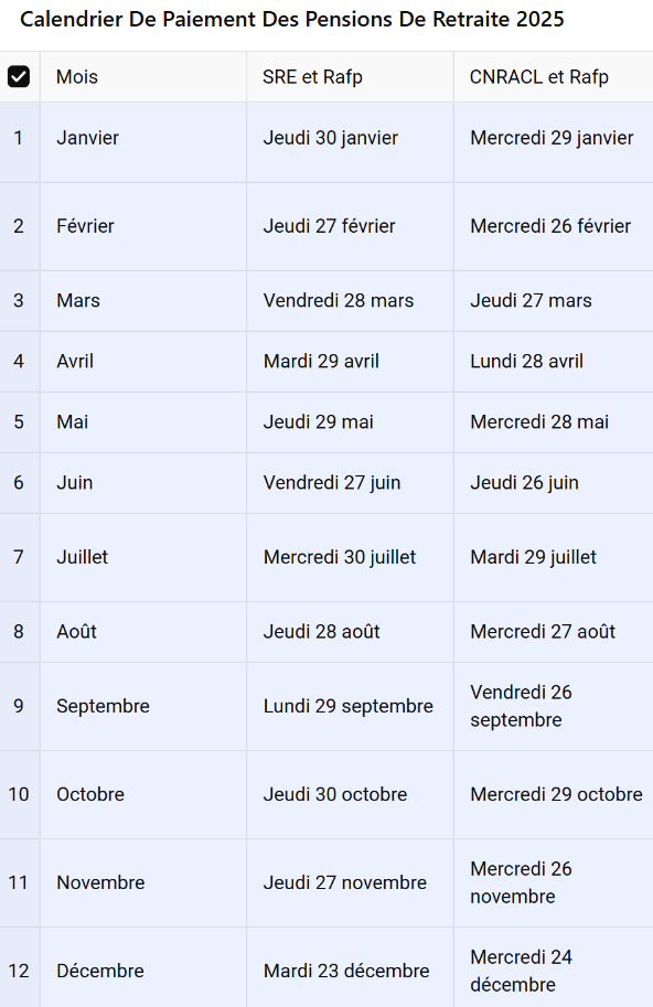 Calendrier de paiement des pensions de retraite pour les fonctionnaires en 2025 (SRE, RAFP et CNRACL)