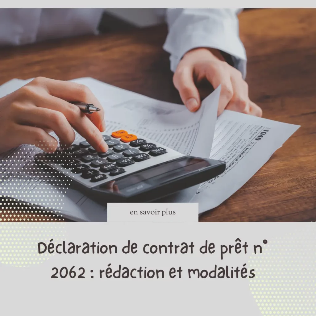 Toutes les informations vues ci-dessus (montant, durée, taux, identités, dates) doivent être reprises telles quelles dans le formulaire 2062. Celui-ci accompagne la déclaration fiscale de l’emprunteur ou du contractant.
