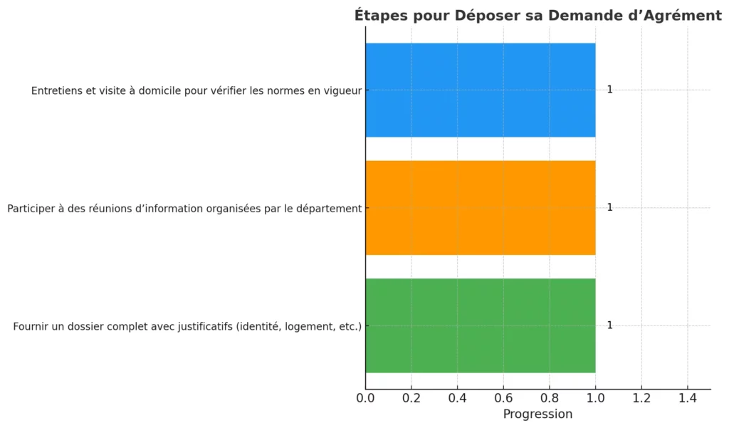 Votre demande d’agrément peut être effectuée en ligne ou en version papier, via un formulaire spécifique fourni par le département. Voici quelques points essentiels à garder en tête :