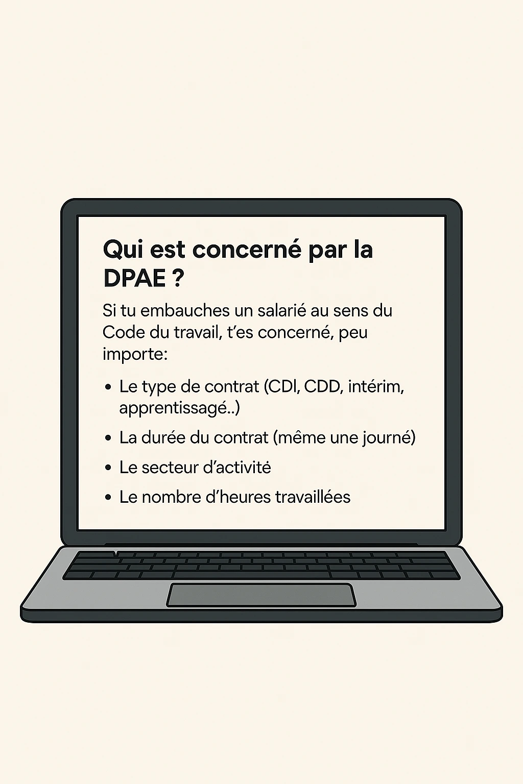 Tu dois faire une DPAE, même si c’est un extra, un ancien salarié que tu reprends ou un jeune en stage conventionné avec gratification.