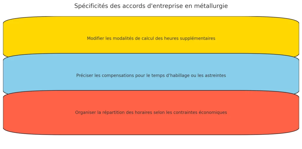 La convention collective nationale de la métallurgie offre une grande souplesse grâce aux accords d’entreprise. Ces accords permettent de :
