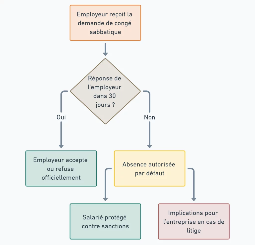 Ce fameux délai de 30 jours, c’est une épée à double tranchant pour l’employeur. Si dans ces 30 jours, il ne répond pas, c’est comme s’il disait « oui ». Le salarié peut donc considérer son absence comme autorisée, et il n’y aura aucune sanction pour départ non justifié.