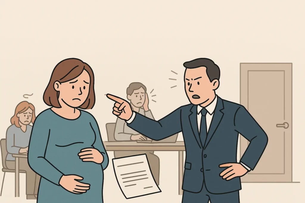 Enceinte et licenciée pour risques psychosociaux — un cas rare, mais reconnu par la loi.
