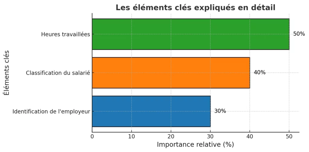 Le détail des heures travaillées, en distinguant les heures normales et supplémentaires, garantit que le salarié est payé conformément au Code du travail.