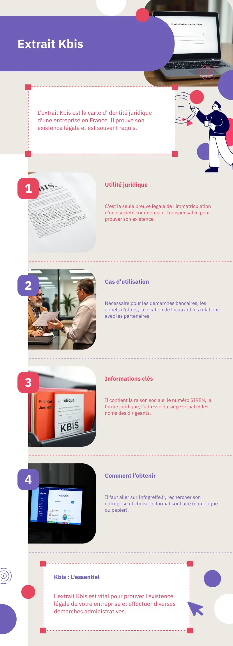C’est le document officiel qui prouve l’existence légale d’une entreprise immatriculée au Registre du Commerce et des Sociétés (RCS). Il est délivré par le greffe du tribunal de commerce.