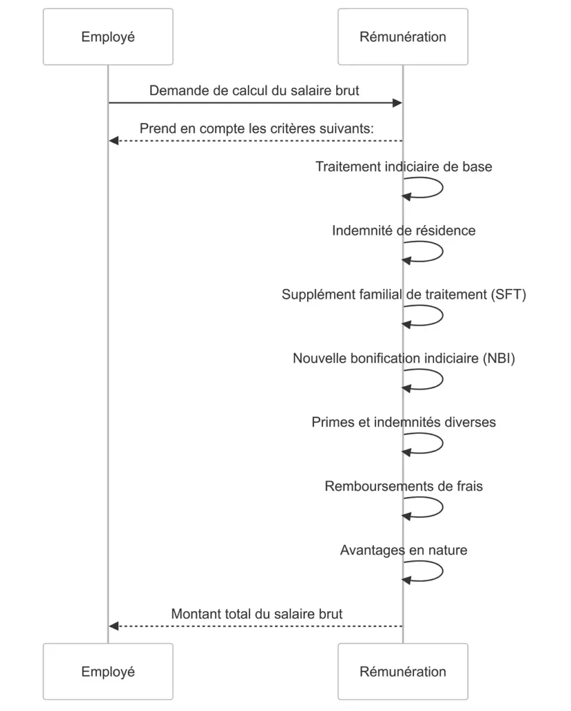 - Montant brut de la rémunération : C’est la somme de ton traitement de base et des autres composantes.