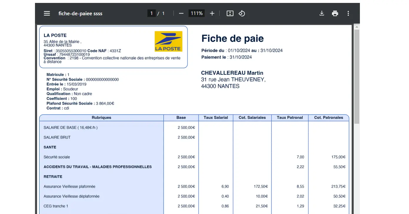- Conservation et protection des données : La fiche de paie PDF empêche toute modification et protège les informations personnelles.