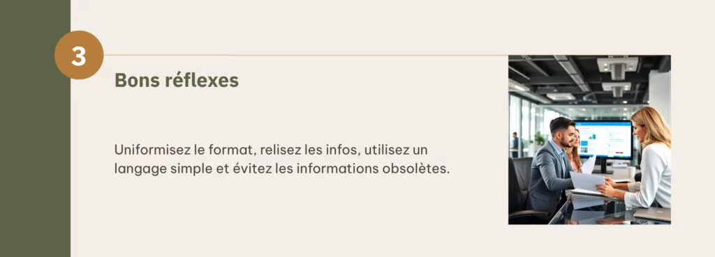 Elle peut vivre sur l’intranet, dans un livret d’accueil RH, ou être envoyée aux partenaires en début de collaboration. Mieux encore : une version publique sur votre site ou LinkedIn pro.