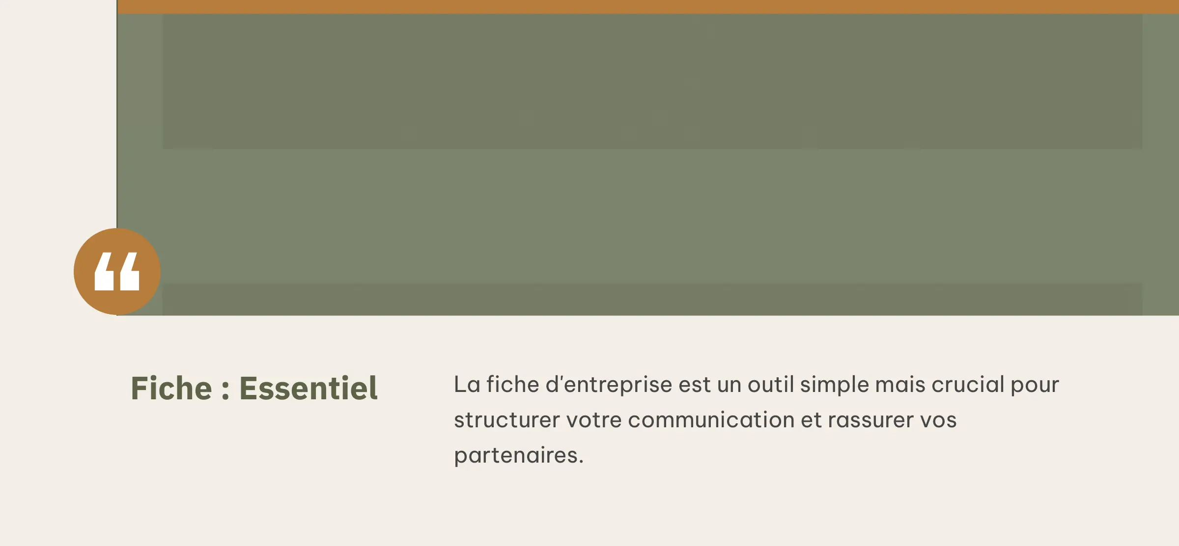 Elle regroupe tout ce qu’il faut savoir sur votre structure : identité légale, statut juridique, coordonnées, activité, responsable… Elle permet à un partenaire de comprendre en quelques lignes avec qui il parle. Et pour vos collaborateurs, c’est un repère fiable. Bref, ce n’est pas un luxe — c’est une base.