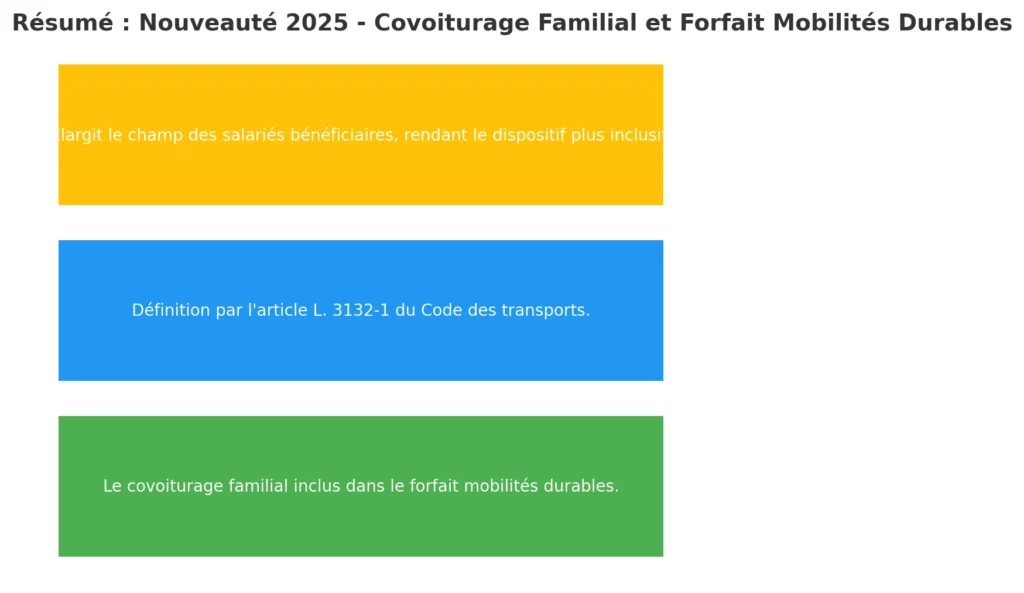Le Bulletin officiel de la sécurité sociale (BOSS) a clarifié une question clé en 2025 : le covoiturage familial est désormais inclus dans le forfait mobilités durables. Cela signifie que les trajets domicile-travail réalisés avec un membre de la famille (conjoint, enfant, parent, etc.) peuvent être pris en charge.