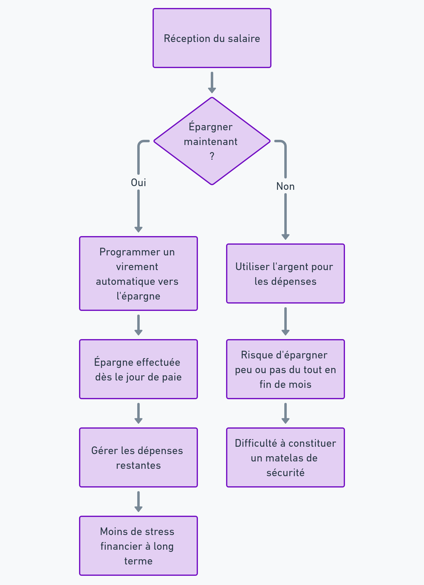 L’idée, c’est de vous traiter comme une priorité. Plutôt que d’attendre la fin du mois pour épargner ce qu’il reste – souvent très peu, voire rien – vous épargnez dès que le salaire tombe. Ce geste régulier transforme l’épargne en une sorte de dépense fixe au même niveau que le loyer ou l’électricité.